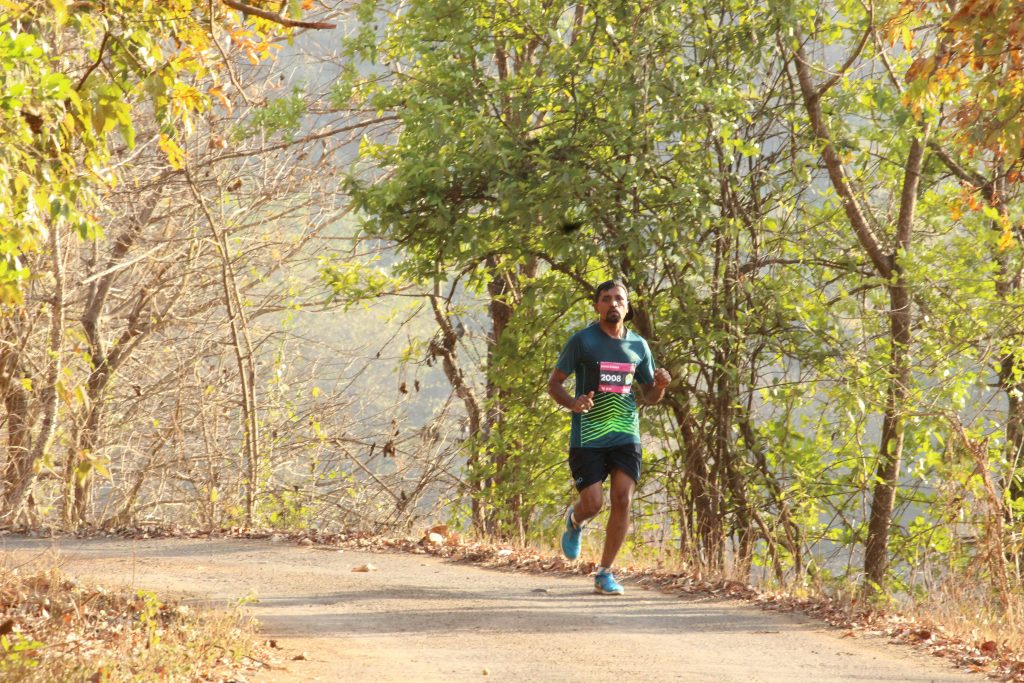 Course format: Semi-autonomous trail running with marked routes using red tape and directional signs