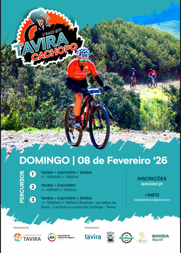O 5º Raid BTT Tavira – Cachopo é um evento de aventura de bicicleta todo-o-terreno que se realiza a 8 de fevereiro de 2026 em Tavira, Faro, Portugal. Este evento não competitivo oferece três opções de percurso guiadas por GPS: um circuito de 100 km com partida e chegada em Tavira passando por Cachopo, um percurso de 50 km de Tavira a Cachopo e uma estafeta de 50 km para equipas de dois atletas.